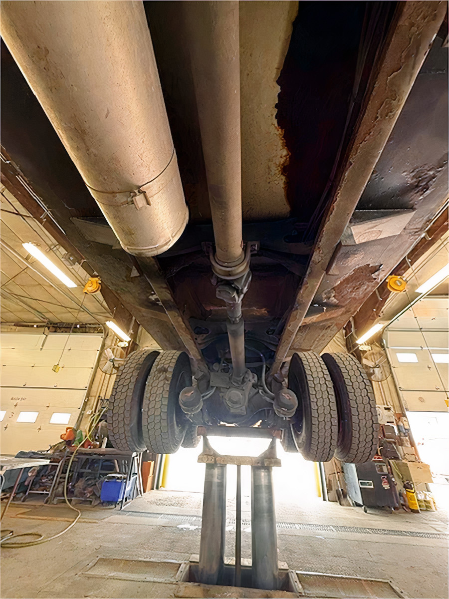 Maintenance highlights include brakes that perform like new. The tires are in good condition, with front tires at 14/32 tread depth and rear tires at 20/32 tread depth. The truck has logged 18,313 hours, reflecting its robust use but well-maintained status.