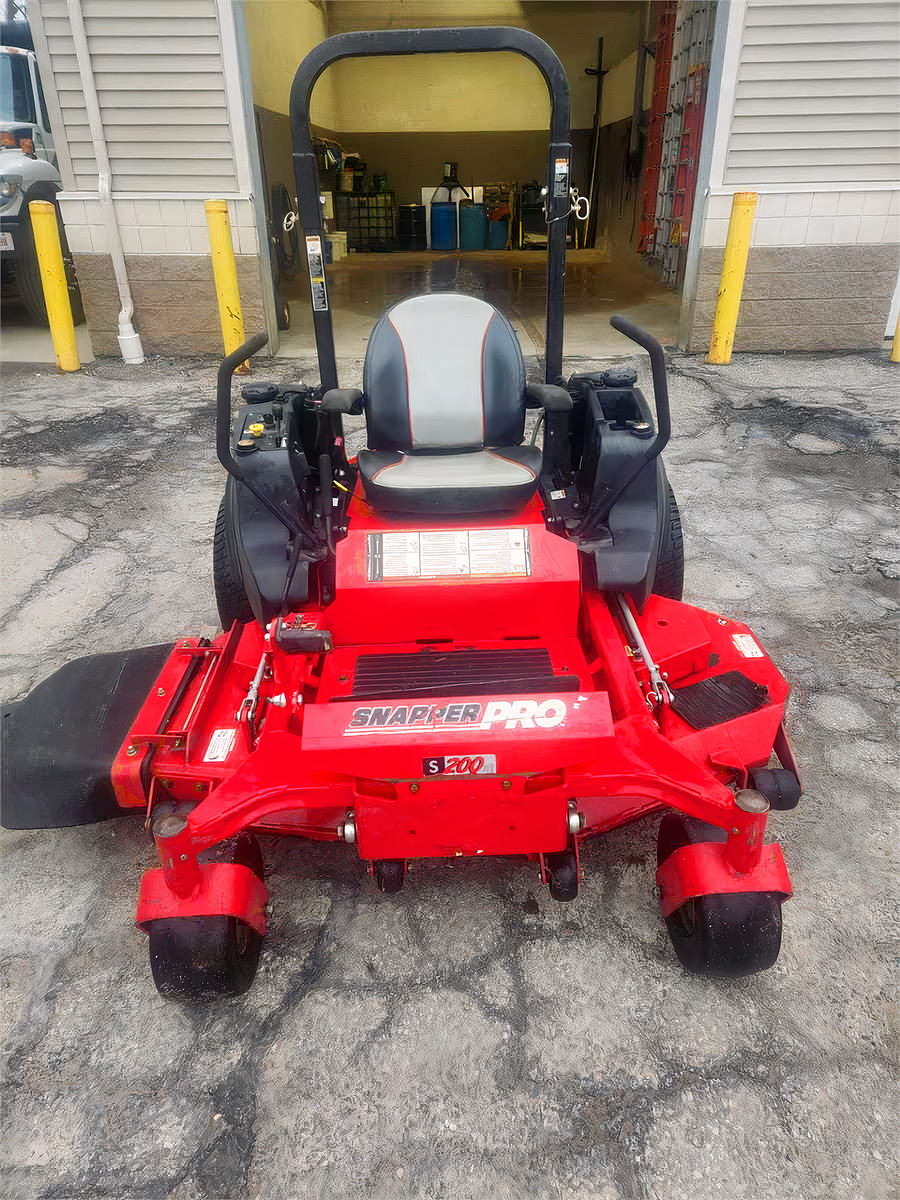 2014 Snapper Pro S200XT Commercial Grade Zero-Turn Mower equipped with a 61" cutting deck, designed for efficient mowing of large acreage or heavy residential areas. This powerful mower offers superior performance and durability, making it ideal for demanding lawn care tasks.