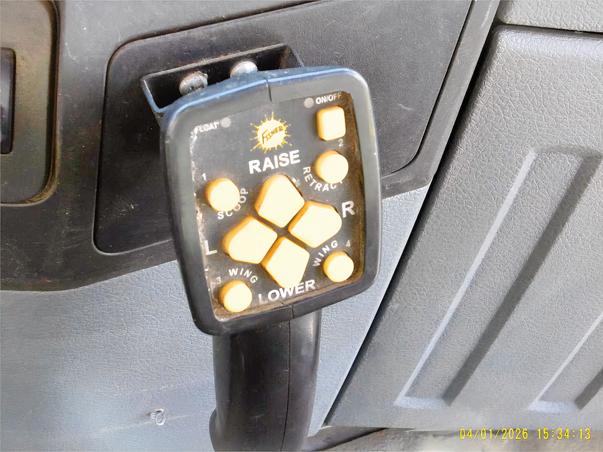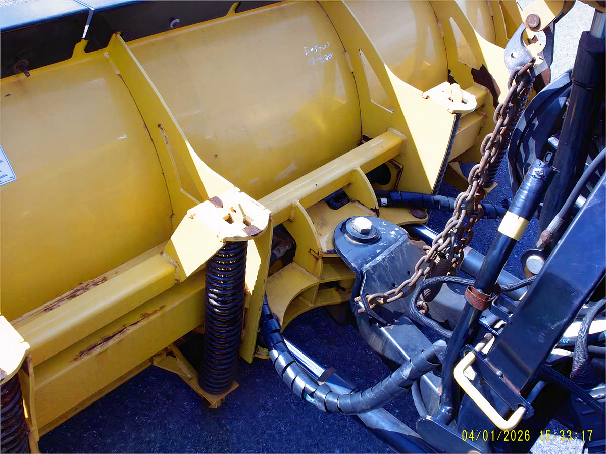 Fisher 8' XLS snowplow, with retractable wings. Full cutting width of plow is 10' with wings expanded.