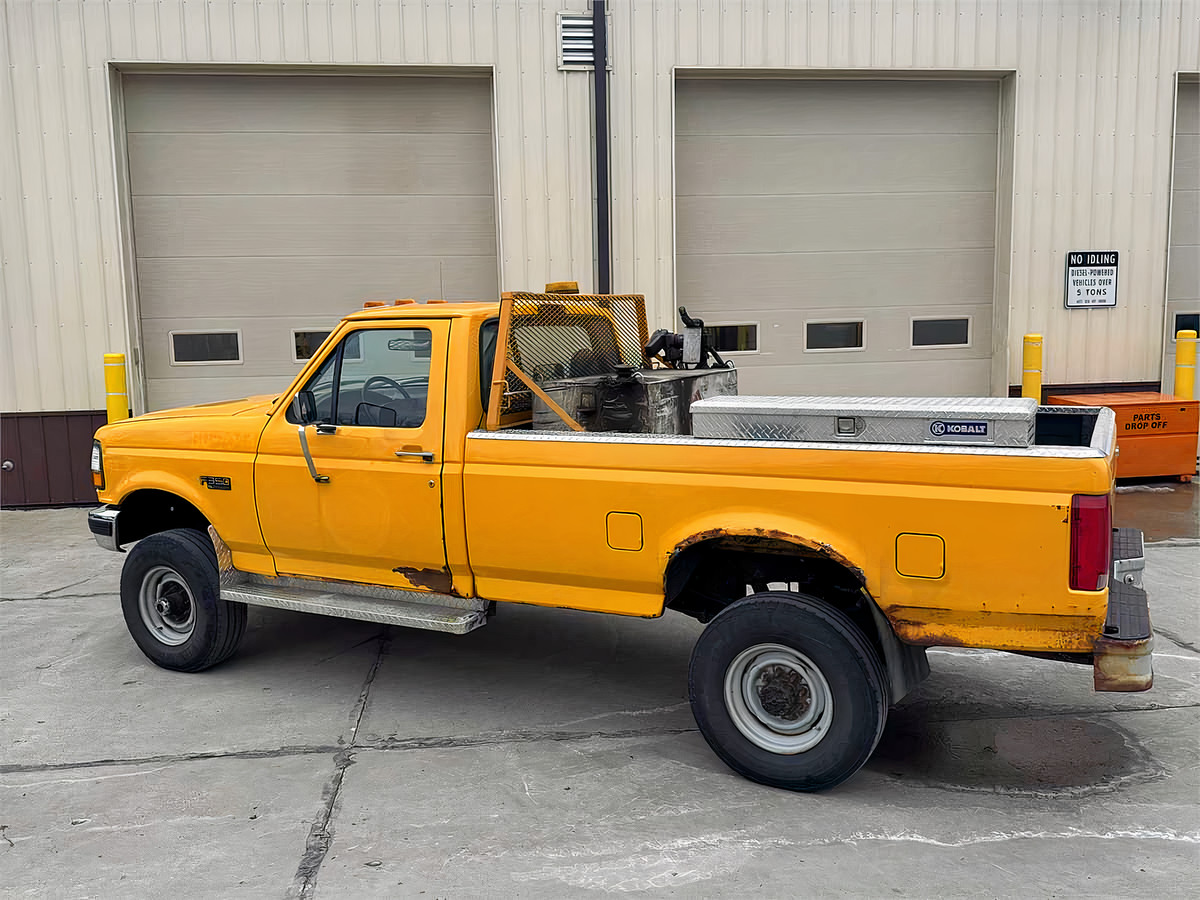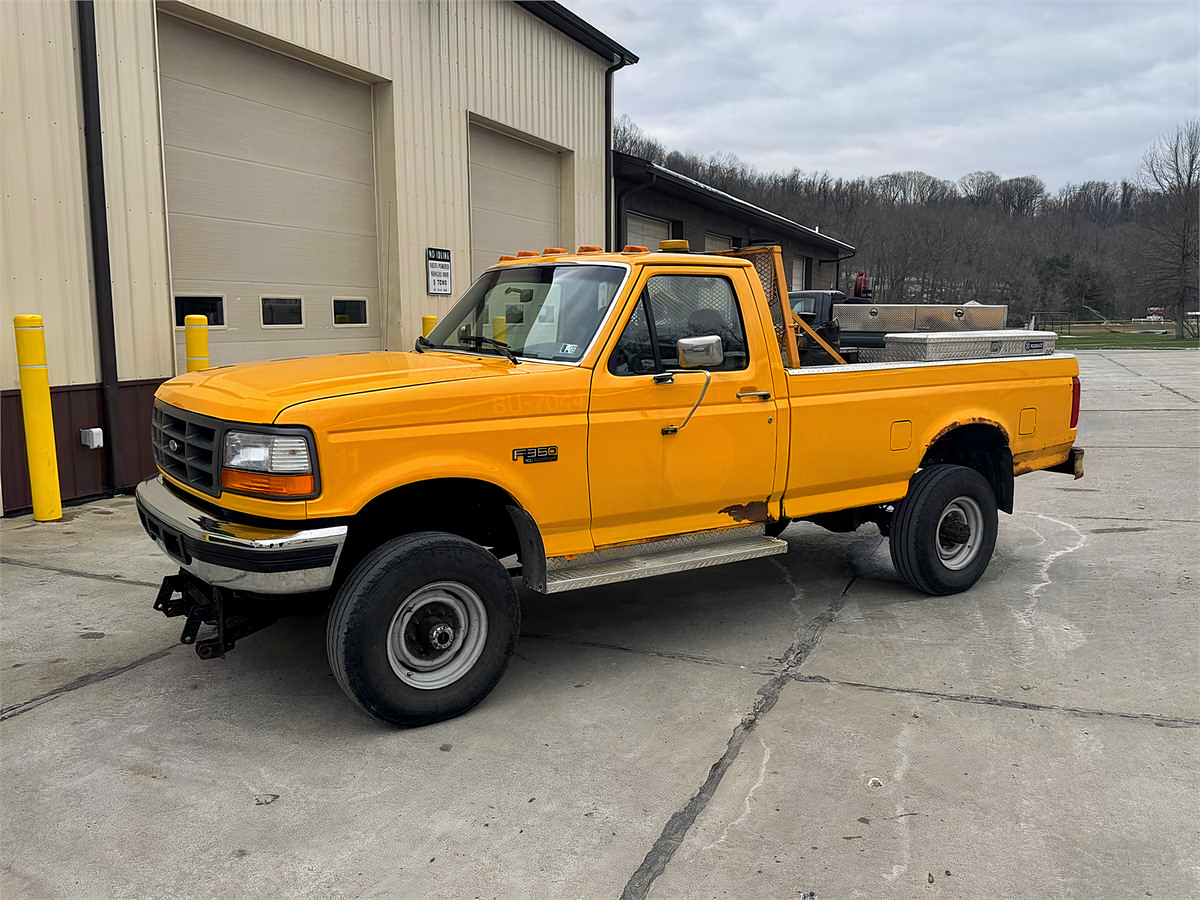 North Fayette Township has a 1997 Ford F-350 (Diesel) Engine for public auction. The vehicle runs, is drive able and DOES NOT have a current inspection. This vehicle shows signs of rust on the frame and body. This item is being sold "as is" without express or implied merchantability warranties. The absence of any mention of defects does not mean there are none. We strongly encourage you to inspect the vehicle/equipment before you bid. All service records are available. The fuel cell, tool box, amber light, and radio NMO cable connectors come with the vehicle.
