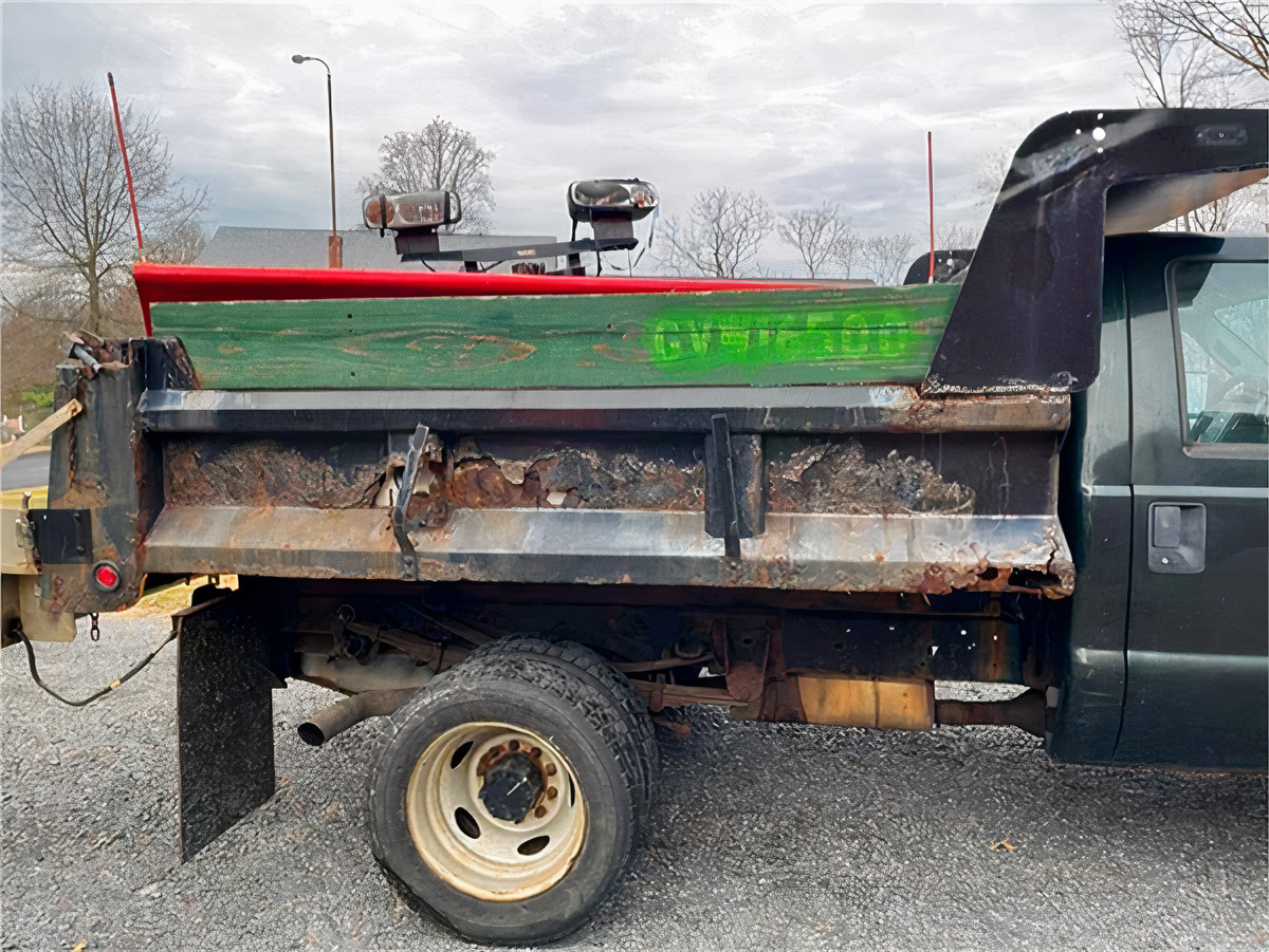 2012 Ford F450 with mechanical issues requiring towing. This four-wheel drive truck comes equipped with a snowplow and an electric salt spreader, making it ideal for winter maintenance tasks. Please note, the vehicle has rust and the body will need to be replaced. Vehicle engine is 6.8-liter V10